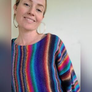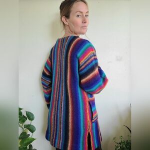 Beautiful wool blend rainbow goodness. Would be lovely with a belt.