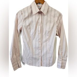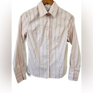 H&M Fitted Long Sleeve Button Down Striped Pale Pink Blouse Women’s 4 Career