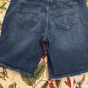 Embrace the timeless appeal of Lee's blue jean shorts, crafted for a relaxed summer vibe. Total link from ways to cuff is 18 inches inseam is 8 inches.