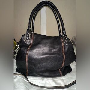 • Features: Slouchy style, spacious interior, worn leather fabrication, exterior zipper compartments, exterior and interior pockets, buckle details, two top handles, detachable and adjustable shoulder strap, zipper closure, branded tag
