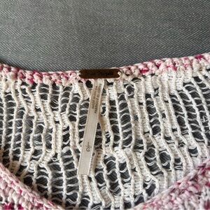 Free People Poppyseed Marled Knit Sheer Lace Back V Neck Pullover Sweater Sz L/G