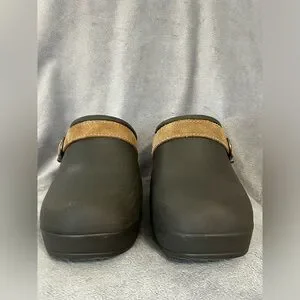 CROCS Brown Tan Clogs with Leather Strap