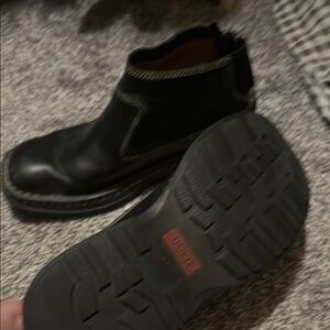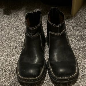 black ankle boots by Born. Features contrast stitching. Comfortable and stylish.