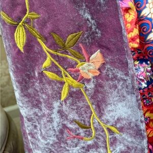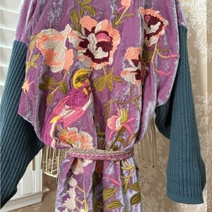 Intricate embroidered velvet outside, lined in satin floral, knit sleeves, pockets and a beautiful belt with silk tassels. Truly a work of art piece🩷