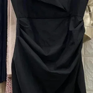 * Asymmetrical draping detail for added flair.