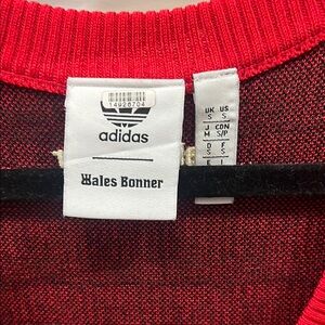 Bold red and black design. Features iconic Adidas logo. Stylish and comfortable for any occasion. Size small - unisex; excellent, like new condition