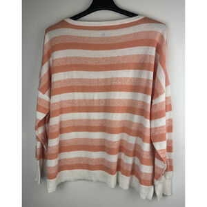 Cabi Swish Linen Blend Pullover Light Sweater Orange Striped Large Boxy Beachy
