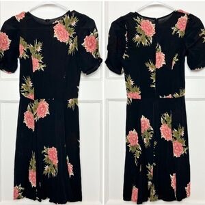 REFORMATION 90s Floral Print Crepe Short Sleeve Fit & Flare Skater Mini Dress