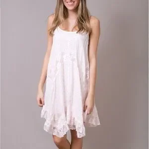 Elegant blush dress by Free People. Features delicate lace hem. Ideal for casual wear.