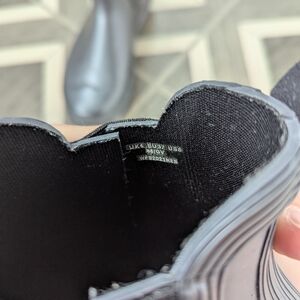 Short Chelsea style rain boots. color is like a grey/blue/metallic looking color. only worn a few times but have some scuffs throughout