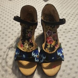 Step out in style with these floral embroidered women's sandals. Featuring a vibrant blue and black design, these sandals are perfect for adding color to any outfit.