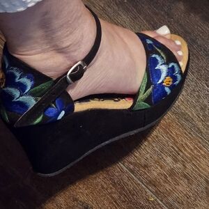 Floral Embroidered Women's Wedge Sandals/