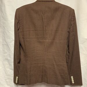 Chaps Brown Pinstripe Pantsuit Linen Blend Classic Business Office