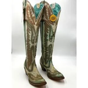 Elevate your style with these chic turquoise and brown ankle boots. Perfect for any occasion, these boots offer both comfort and elegance.