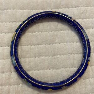 Vintage Floral Blue and Gold Bangle Bracelet