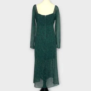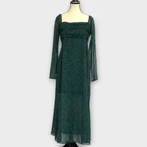Great condition!! No flaws. Abercrombie & Fitch Emerson Chiffon Dress LARGE Midi Green Fairycore Whimsigoth. Please see measurements on size card in photos to help ensure fit. Thanks for looking!
