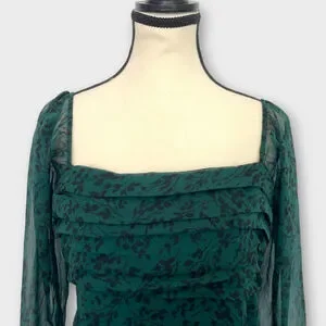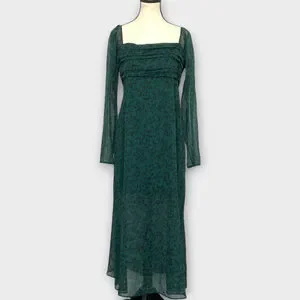 Abercrombie & Fitch Emerson Chiffon Dress LARGE Midi Green Fairycore Whimsigoth