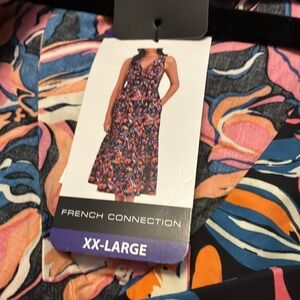 Step into casual elegance with the French Connection sundress, featuring a sleeveless design and a flattering V-neckline. This maxi dress showcases a vibrant mix of blue and pink floral patterns, perfect for resort wear. The flowing fabric and defined waistline create a graceful silhouette, making it an ideal choice for a relaxed yet stylish look.