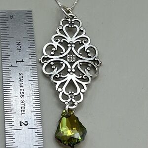 Silver and Green Swarovski Crystal Filigree Necklace with Vintage Charm