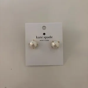 Chic stud earrings with gold center and cream accents. Perfect for any occasion.