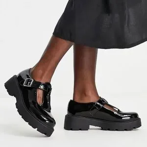 Smooth lining with a padded insole. Buckle strap closure on the upper. Slip-on style. Synthetic outsole.