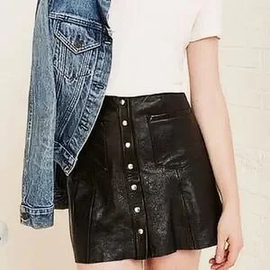 REFORMATION Genuine Leather Black Snap Button Skirt 4 Rock Punk Revolve Grunge