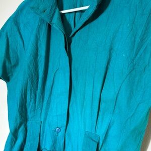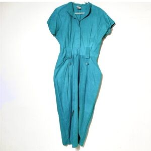 Stylish teal jumpsuit with button details. Perfect for any occasion.