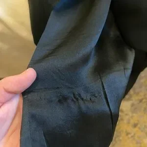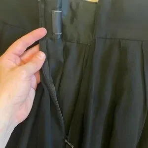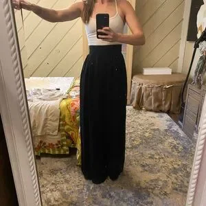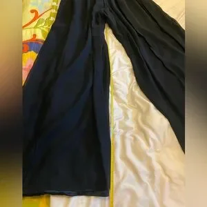 Sophisticated black piece by Carmen Marc Valvo. Ideal for elegant occasions. Pairs nicely with bodysuit or cropped tops. Faltering waistband and zipper closure. Double layered with sheer fabric on top and silky opaque fabric underneath. Size 2.