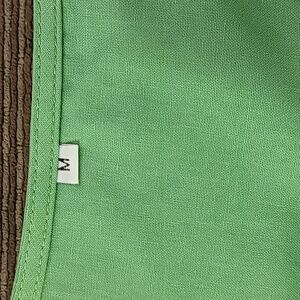 Short Sleeve, Scoop Neck Blouse, Green With Unique Fish Print on One Side, Decorative Buttons on Other Side, Size Medium.