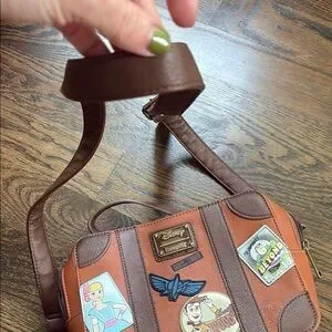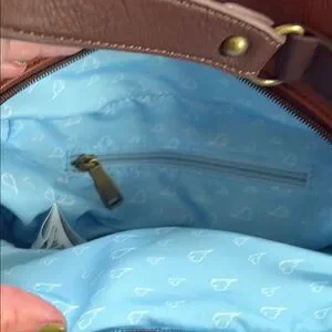 Charming Disney crossbody bag in brown with a vibrant blue lining. Ideal for everyday use. Handle or crossbody. Inside zipper pocket. Never used. Smoke free home.