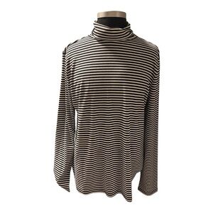 Elegant cowl neck with classic stripes. Ideal for any occasion. Comfortable and chic.