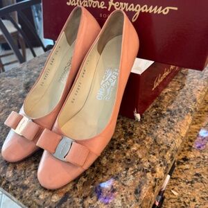 Salvatore Ferragamo Pink Kitten Heels with Bow