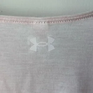 ✨very sheer✨ - the silver UA logo you see from the front view neck line behind the tag is the pink logo that’s on the back shining through