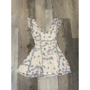 Princess Polly Dress Womens XXS Blue White Dream Away Mini Floral Ruffle Summer
