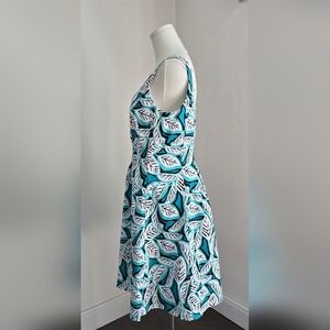 Anne Klein Sleeveless Scoopneck Teal Leaf Fit & Flare Cotton Dress Sz. 8