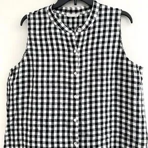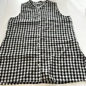 EILEEN FISHER || Sleeveless Black and White Linen Tunic Top. Sz. XL