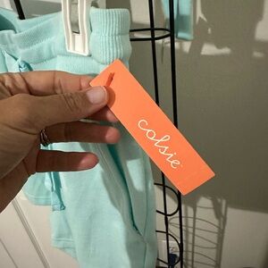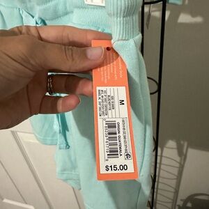 Comfortable light teal set with top and shorts. Ideal for lounging.