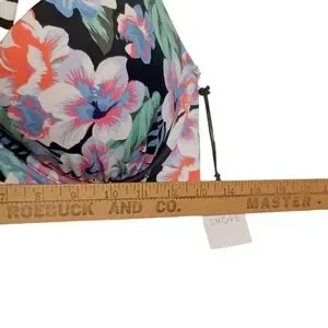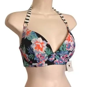 SHADE & SHORE Colorful Blue Floral Print White Stripe Halter Bikini Top 34D