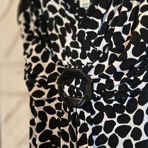 This chic sundress features a sleeveless design with a scoop neckline, perfect for a night out or cocktail event. The black and white color scheme is complemented by a striking pattern, while the midi length and relaxed A-line silhouette offer a flattering fit. Crafted from lightweight fabric, this dress ensures comfort and style for any occasion.