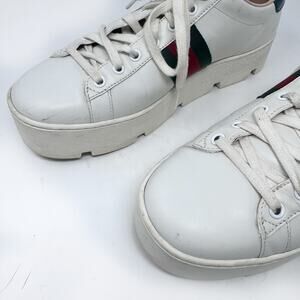 GUCCI Calfskin Web Bee Embroidered Womens Ace Platform Sneaker White EU 40.5