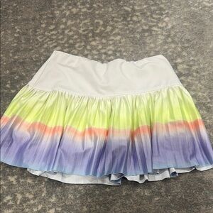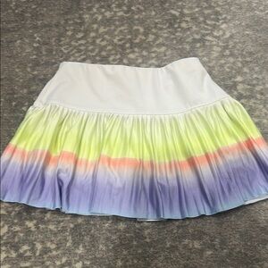 Add a pop of color to your wardrobe with this stylish pleated skirt sit shorts Featuring a blend of white, yellow, orange, and purple, it's perfect for any occasion kids size 7/8. Used but still adorable and in good shape