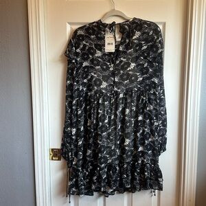NWT Free People Black and White Bishop Sleeve Mini Dress M
