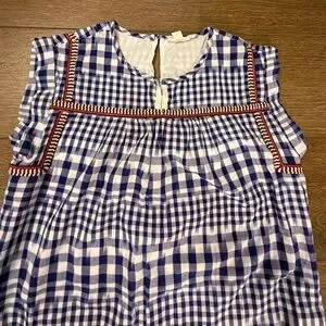 J. Crew Crewcuts Girls Gingham Navy Dress Embroidered Lined Sz 14 Summer/Fall