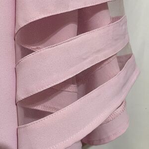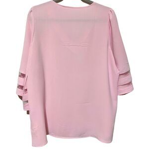 Dusty Pink V Neck Chiffon Blouses Tops Oversized Long Lantern Sleeve with Mesh Panel Detail Loose Top Chelsea28