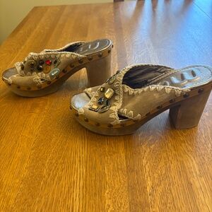 Mou new (worn once), wood heel sandals. Perfect excellent condition. Size 40. Fits l ike a 9. Bought in Italy summer 2025. FAST shipping!