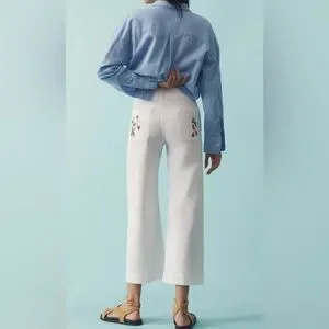 Anthropologie The Colette Wide Leg Cropped Pants by Maeve: Embroidered Edition