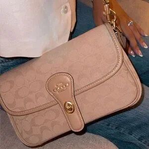 Signature canvas and smooth leather Inside multifunction pockets Turnlock closure fabric lining Detachable handle with 9 1/2 drop Outside slip pocket Detachable strap with 20 drop for shoulder or crossbody wear 9 3/4 (L) x 6 (H) x 2 3/4 (W) Exclusive of trim this piece is crafted of cotton sourced from farms that use regenerative agricultural practices—those that help to maintain and rejuvenate land increase biological diversity and soil health and could lead to increased carbon absorption Style No. CAK49