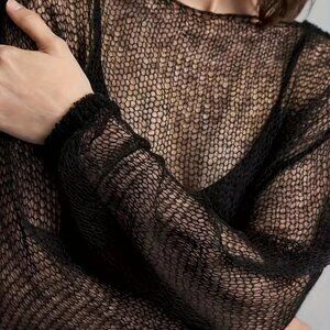 HOST PICK Knitted Long Sleeves Crop Top Black