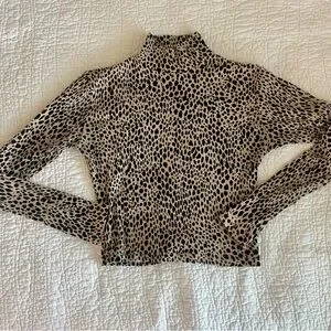 Brandy Melville Cheetah Print Long Sleeve mock turtleneck top. Cropped. 100% cotton. Made in Italy.