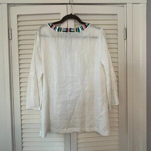 NWT Talbots white tunic. Slightly sheer. Bell sleeves. Embellished and beaded with fish design at neck. 100% linen. New with tags, no flaws.